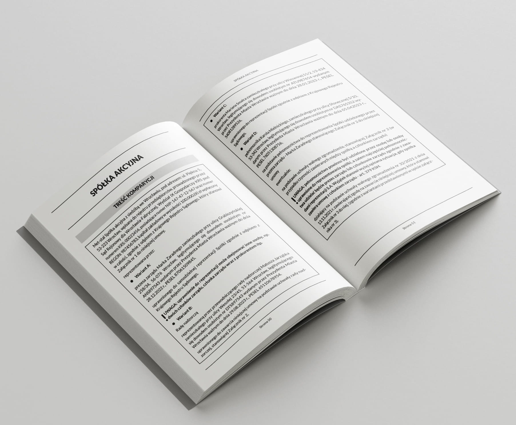 - przykładowy opis danego podmiotu w komparycji ze wszystkimi niezbędnymi danymi,